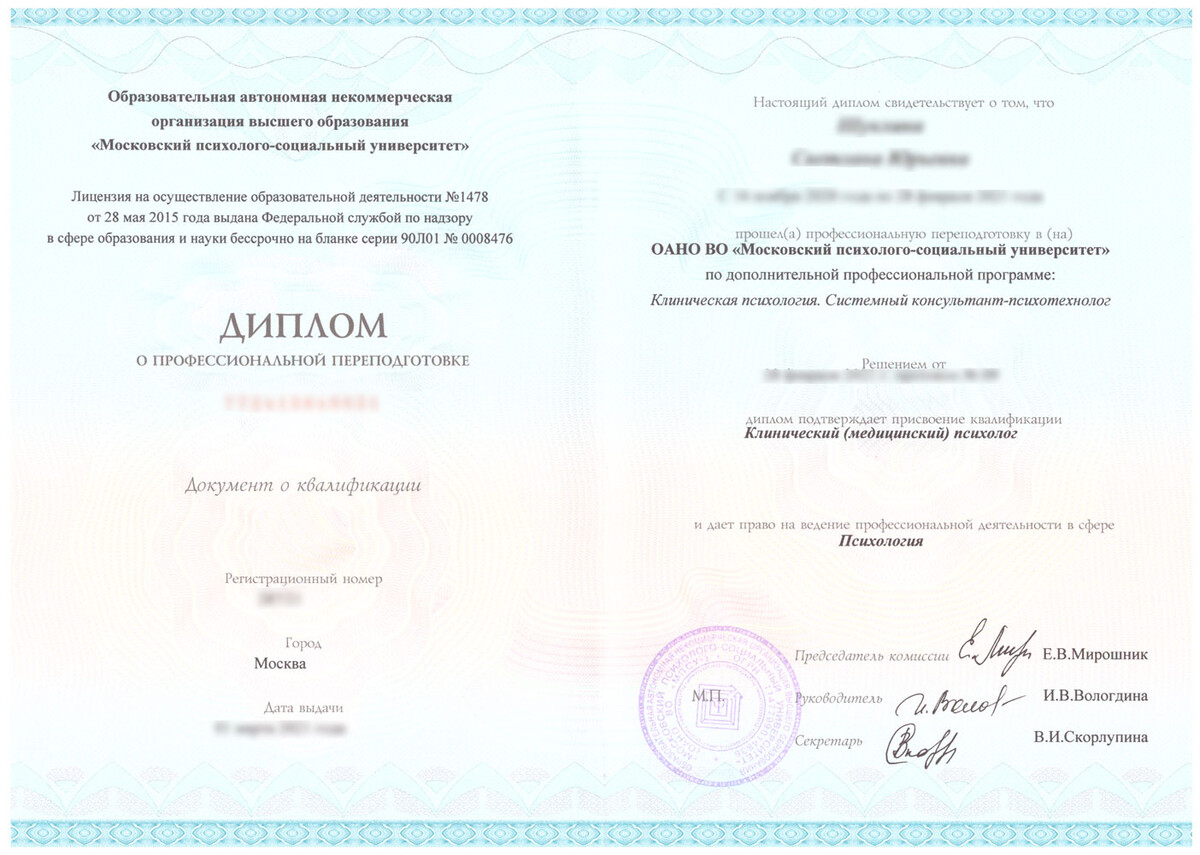 Стоимость обучения: 62 000 рублей, оплата по договору на счет МПСУ.