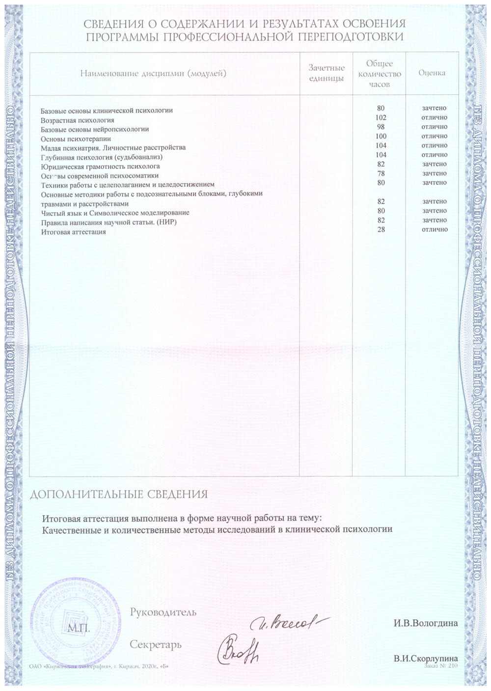| Базовые основы нейропсихологии (нейрокомфорт) — 72 час | |